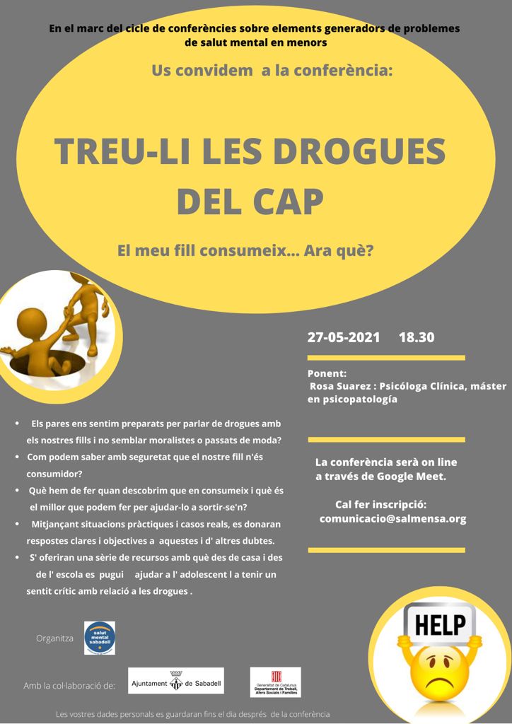 L’AFA us recomana la conferencia: “Treu-li les drogues del cap” que serà online amb el GOOGLE MEET el proper 27 de Maig a les 18:30.